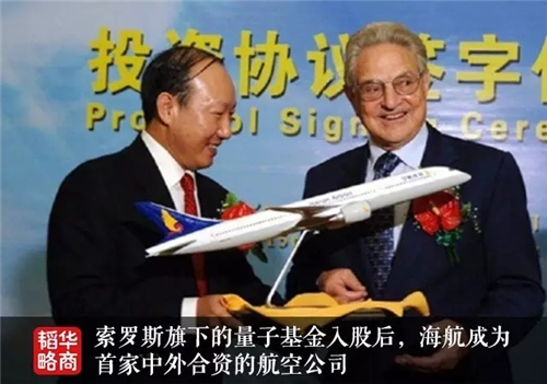 拿银行的钱买飞机,再用飞机做抵押继续拿银行的钱,陈峰成功“算计”了银行,银行也从海航的发展中赚到了大笔的真金白银。 如此起家,从最开始,陈峰就给海航定下了倒金字塔的发展模型,用飞机维系现金收入,用现金偿还银行贷款,用银行贷款持续扩张。因此,高负债率成了海航的重要特点。 负债率很高之后,国内银行不愿再给海航放款。集团的资本只够维持现状,迈不开步子。 于是,陈峰又踏上了“找钱”的路。他跑去华尔街待了三个月,出席各种大大小小的会议,逢人便用一口自学的、蹩脚的英语给人讲故事。 后来,索罗斯被其打动,拿出2500万美元买下海航25%的股份,海航由此成为首家中外合资的航空公司。