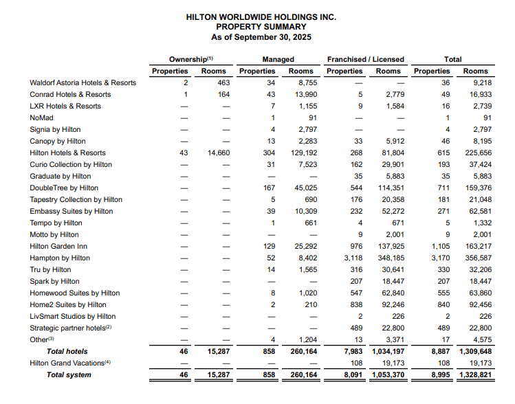 从品牌结构来看,希尔顿旗下的奢华品牌,包括康莱德(Conrad)、LXR、Signia和华尔道夫(Waldorf Astoria)等。 如果把这些品牌放进希尔顿的整体盘子里,你会发现一个相当尴尬的事实,截至今年三季度: 康莱德:49家,16933间客房;ADR约270美元 LXR:16家,2739间客房;ADR约463美元 Signia:4家,2797间客房; 华尔道夫:36家,9218间客房;ADR约461美元 合计下来,105家奢华酒店,约3.17万间客房。 按照2025年Q3财报,希尔顿全球共有8,995家酒店,1,328,821间客房,奢华酒店的占比只有1.17%,房间数占比也仅2.38%。 换句话说,即便你愿意一年掏出十几万冲曜钻,但真正能与你的“高端身份”匹配的希尔顿奢华酒店,寥寥无几。 于是,就出现了一个极其有趣的画面,即便你贵为曜钻,大部分时间可能还是只能选择希尔顿花园、逸林、惠庭。 你期待的“尊贵感”,最后换来的可能还是“标准化的执行”。 就像那盘略显寒酸的水果,折射出会员的无奈一样。 当会员计划无法持续兑现“身份溢价”,剩下的就只能是不断通胀权益、不断消耗忠诚。 真正的忠诚,从来不是靠会员数字堆砌出来的,而是让会员在一次次入住后,依然愿意选择回头。 |
