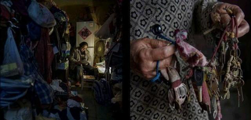 她长期在无锡街头做小生意,卖床单、被套、等日常用品,在这里已经住了15年。有一次上街贩卖时,被城管城管逮住了,所有商品全部被没收,还要罚款300元,她反复不停地求情,谎称儿子是傻子,儿媳妇闹离婚跑了,这时城管才肯作罢。